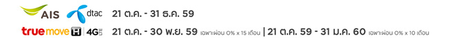 | 2 | 0% X 10 เดือน | ยอดผ่อนชำระ (บาท) 20,000 - 24,999 25,000 - 29,999 30,000 - 34,999 35,000 บาทขึ้นไป | รับเครดิตเงินคืน (บาท) 700 1,000 1,200 1,500 |