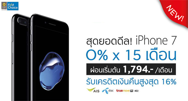 สุดยอดดีล! iPhone 7 ผ่อน 0% นาน 15 เดือน พร้อมรับเงินคืนสูงสุด 16% จากบัตรกรุงศรีเฟิร์สช้อยส์