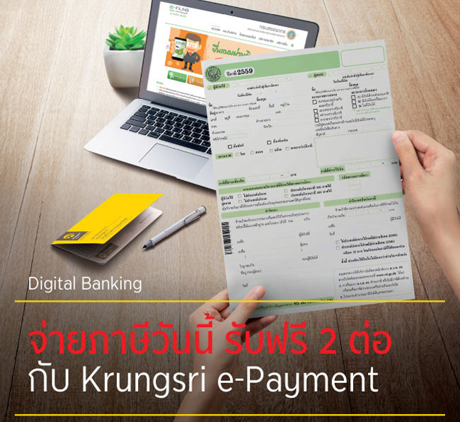 จ่ายภาษีวันนี้ รับฟรี 2 ต่อ กับ Krungsri e-Payment จาก ธ.กรุงศรีอยุธยา