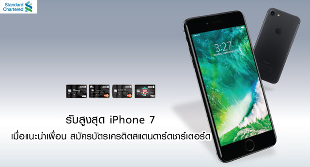 รับฟรี! iPhone 7 เพียงแนะนำเพื่อน สมัครบัตรเครดิตสแตนดาร์ดชาร์เตอร์ด ออนไลน์
