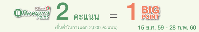 เงื่อนไขรายการส่งเสริมการขาย - การคำนวณยอดแลกคะแนนสะสม KBank Reward Point เป็น BIG Point จะคำนวณยอดระหว่างวันที่ 15 ธ.ค. 59 - 28 ก.พ. 60