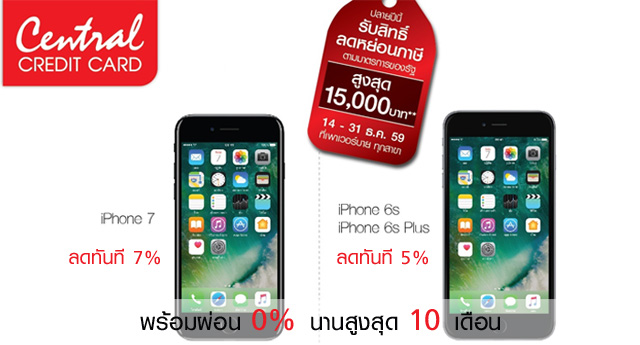 บัตรเซ็นทรัล เครดิตคาร์ด - ลดทันที 7% สำหรับ iPhone 7