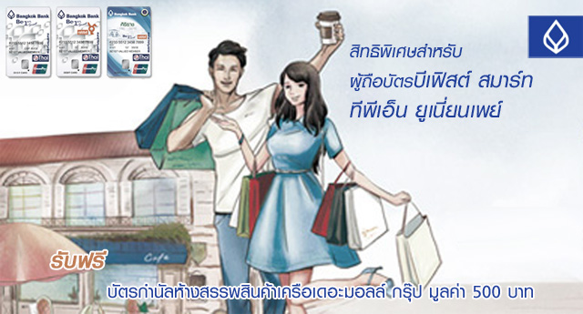 รับฟรี! บัตรกำนัลมูลค่า 500 บาท เมื่อใช้จ่ายที่ห้างฯ เครือเดอะมอลล์ กรุ๊ป ผ่านบัตรบีเฟิสต์ สมาร์ท ทีพีเอ็นฯ