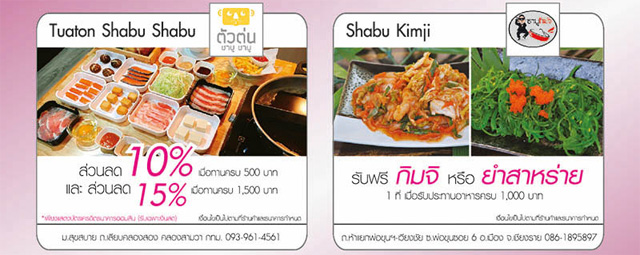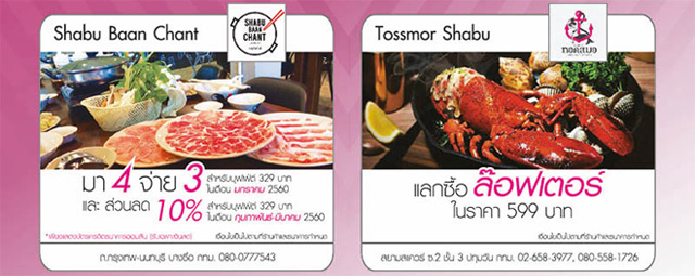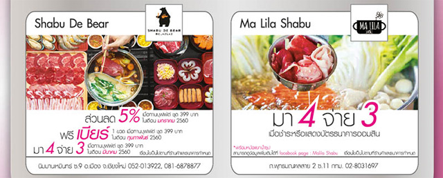 สงครามชาบู!! รับสิทธิพิเศษ และส่วนลดสูงสุด 15% เมื่อรับประทานที่ร้านชาบู สาขาที่ร่วมรายการ เพียงชำระหรือแสดง