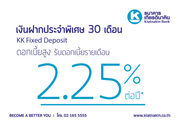 เงินฝากประจำพิเศษ 30 เดือน KK Fixed Deposit ดอกเบี้ยสูง รับดอกเบี้ยรายเดือน 2.25% ต่อปี