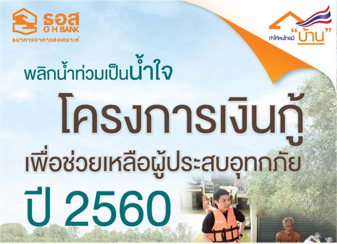 พลิกน้ำท่วมเป็นน้ำใจ...โครงการเงินกู้เพื่อช่วยเหลือผู้ประสบอุทกภัย ปี 2560 จากธนาคารอาคารสงเคราะห์