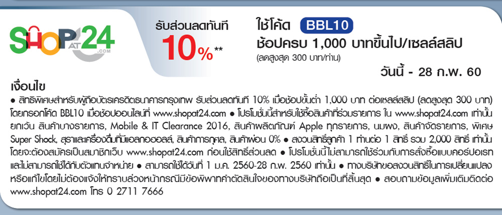 ระยะเวลาโปรโมชั่น : วันนี้ - 28 ก.พ. 60