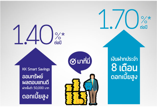 บัญชีเงินฝากออมทรัพย์ KK Smart Savings ออมทรัพย์ผลตอบแทนดี ฝากขั้นต่ำ 50,000 บาท ดอกเบี้ยสูง
