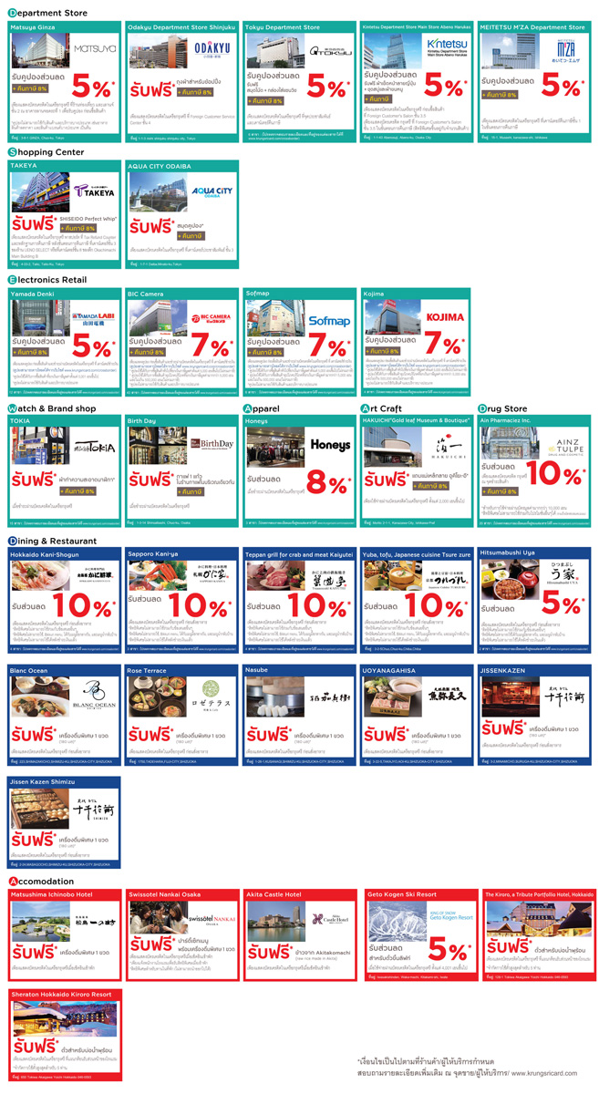ลดและรับ กิน ช้อป เที่ยว ณ ห้างฯ และร้านค้าชั้นนำ พร้อมสิทธิพิเศษกว่า 143 สาขาที่ญี่ปุ่น จากบัตรฯ กรุงศรี