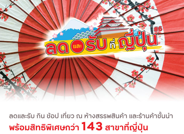 ลดและรับ กิน ช้อป เที่ยว ณ ห้างสรรพสินค้า และร้านค้าชั้นนำ พร้อมรับสิทธิพิเศษกว่า 143 สาขาที่ญี่ปุ่น... จาก