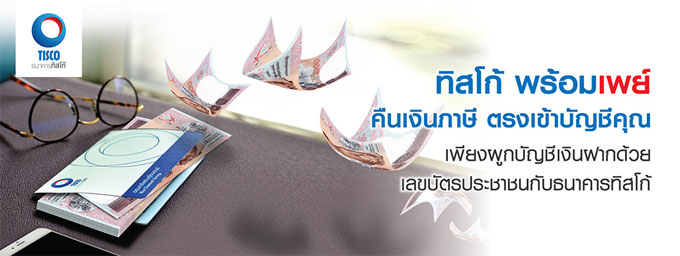 ผูกบัญชีเงินฝากกับ ทิสโก้ พร้อมเพย์ คืนเงินภาษี ตรงเข้าบัญชี พร้อมรับสิทธิพิเศษมากมาย