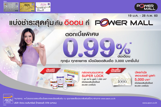 แบ่งชำระสุดคุ้ม กับบัตรเครดิตอิออน ที่ POWER MALL อัตราดอกเบี้ยพิเศษ 0.99% ต่อเดือน