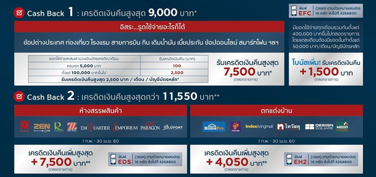- Cash Back 2 : เครดิตเงินคืนสูงสุดกว่า 11,550 บาท