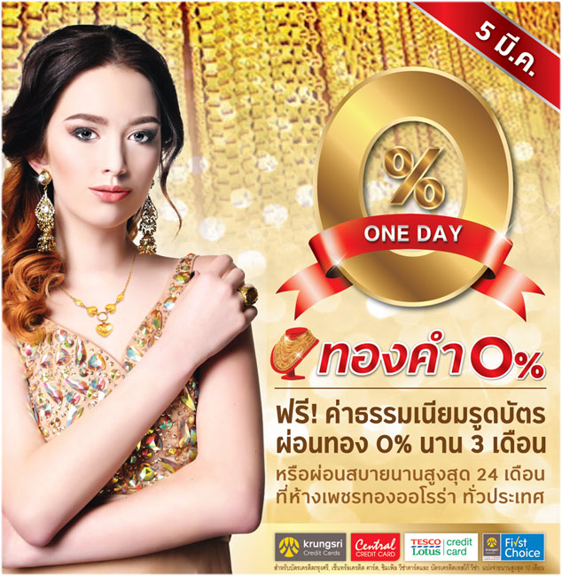 ผ่อนทอง 0% วันเดียวเท่านั้น ฟรีค่าธรรมเนียมรูดบัตร พิเศษเฉพาะบัตรในเครือกรุงศรี