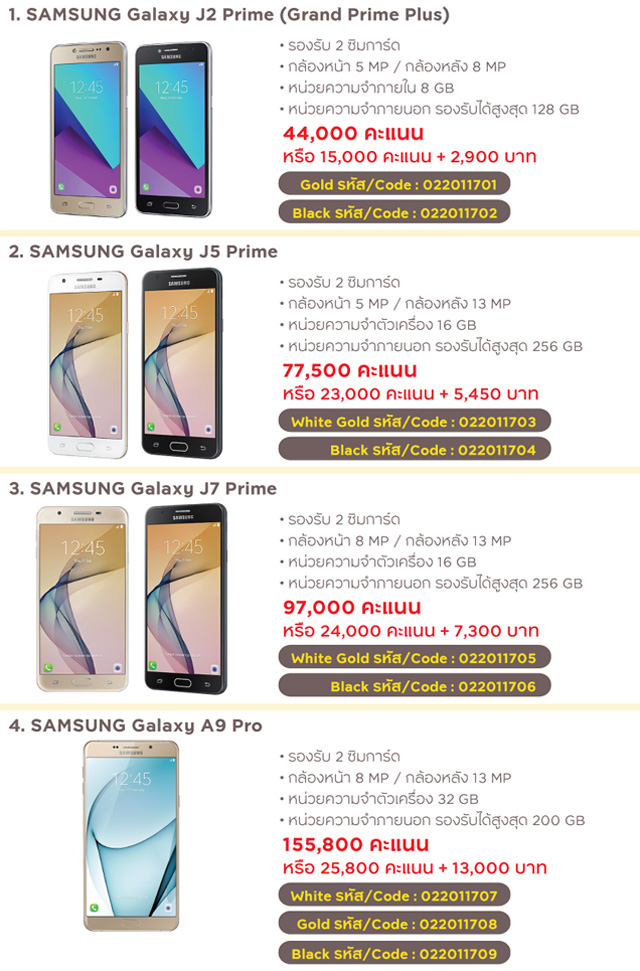 SAMSUNG Galaxy A9 Pro รายละเอียดการแลกคะแนนสะสม