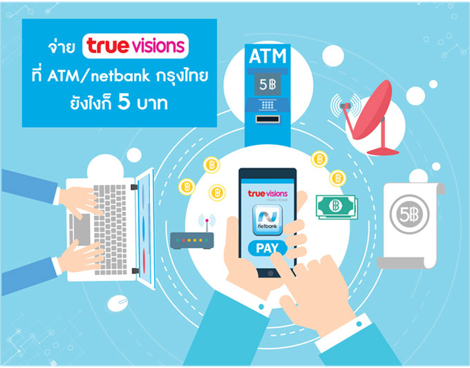 จ่ายค่าบริการ true visions ผ่านช่องทาง ATM หรือ KTB netbank เพียง 5 บาท/รายการ
