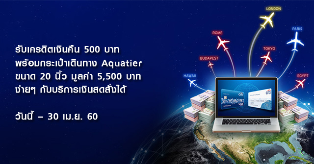 (คลิกที่นี่ เพื่อทำการสมัครบัตรเครดิตซิตี้ออนไลน์โดยตรง) ระยะเวลาโปรโมชั่น : วันนี้ - 30 เม.ย. 60
