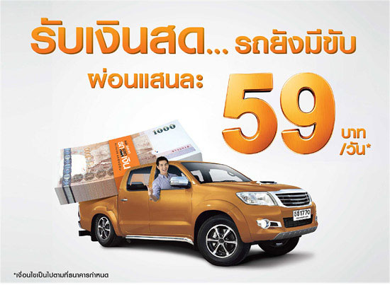 รับเงินสด...รถยังมีขับ ผ่อนแสนละ 59 บาท/วัน กับสินเชื่อรถแลกเงิน จาก ธ.ธนชาต