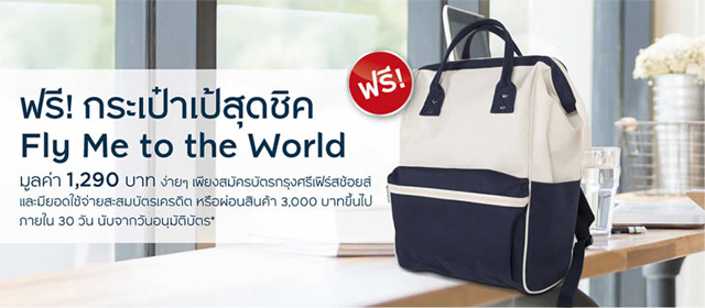รับฟรี! กระเป๋าเป้สุดชิค Fly Me to the World มูลค่า 1,290 บาท เมื่อสมัครบัตรเครดิตกรุงศรีเฟิร์สช้อยส์