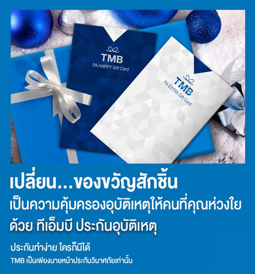 - ธนาคารทหารไทย (จำกัด) เป็นเพียงนายหน้าประกันวินาศภัย หากมีปัญหา หรือข้อสงสัยใดๆ เกี่ยวกับเงื่อนไขการรับประกัน ความคุ้มครอง และอัตราเบี้ยประกันภัย กรุณาติดต่อ บริษัท ไทยประกันภัย จำกัด (มหาชน) ซึ่งเป็นผู้รับประกันภัยโดยตรง