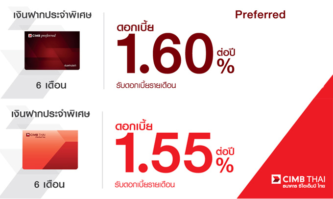 เงินฝากประจำพิเศษดอกเบี้ยสูง เดือนพฤษภาคม 2560 จาก ซีไอเอ็มบี ไทย