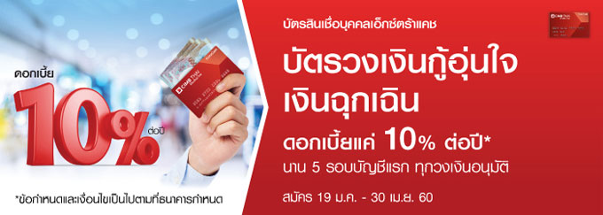 บัตรสินเชื่อบุคคลเอ็กซ์ตร้าแคช ExtraCash ดอกเบี้ยแค่ 10% ต่อปี นาน 5 รอบบัญชีแรก