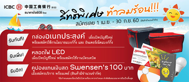 สิทธิพิเศษ ท้าลมร้อน สำหรับลูกค้าเปิดบัญชีใหม่กับธนาคารไอซีบีซี(ไทย)