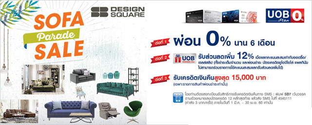 ผ่อนชำระ 0% นาน 6 เดือน พร้อมรับเงินคืนสูงสุด 15,000 บาท ที่ SB Design Square จากบัตรเครดิตยูโอบี