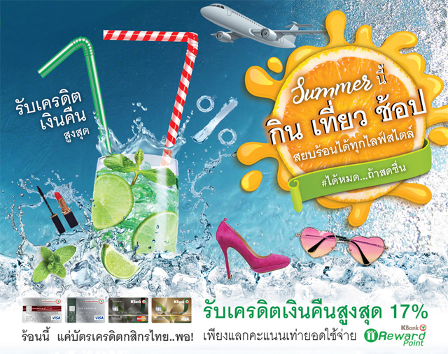 Summer นี้ กิน ช้อป เที่ยว สยบร้อนได้ทุกไลฟ์สไตล์ รับเครดิตเงินคืนสูงสุด 17% จากบัตรเครดิตกสิกรไทย