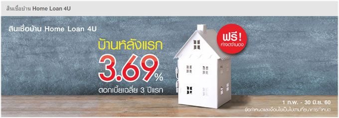 สินเชื่อบ้าน Home Loan 4U กู้ซื้อบ้านหลังแรก! ดอกเบี้ยเฉลี่ย 3 ปีแรก 3.69%