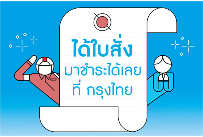 "สามารถชำระได้ที่ช่องทางของธนาคารกรุงไทย" โดยสามารถนำใบสั่งแบบกล้องที่มีแถบบาร์โค้ดมาทำรายการผ่านช่องทางต่างๆ ของธนาคารได้ ดังนี้