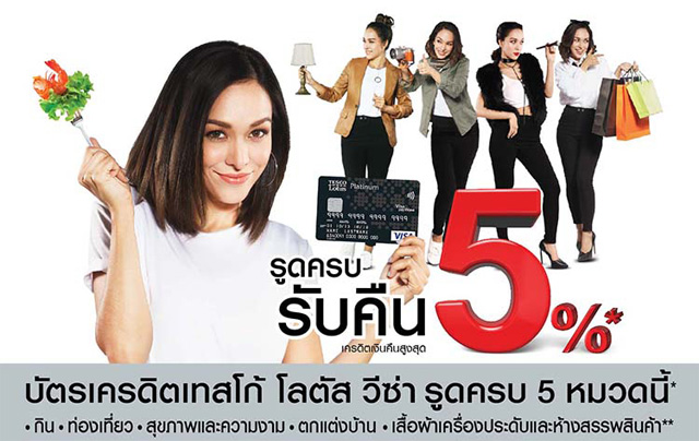 รูดครบ 5 หมวด รับเครดิตเงินคืนสูงสุด 5% ณ ร้านค้าที่ร่วมรายการ จากบัตรเครดิตเทสโก้ โลตัส วีซ่า