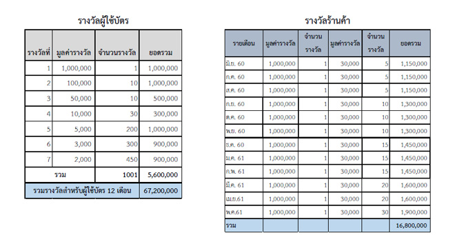รายละเอียดรางวัลสำหรับผู้ใช้บัตร และร้านค้า