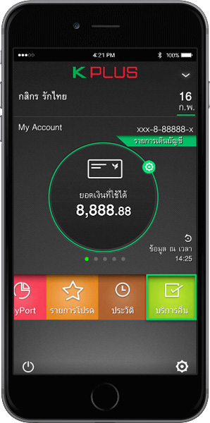 บริการธนาคารบนมือถือจากธาคารกสิกรไทย ทำธุรกรรมได้หลากหลาย ทั้งโอน เติม จ่าย จัดการบัญชีหรือบัตร รวมถึงบริการอื่นๆ ที่สามารถทำได้เร็วและง่ายในสไตล์คุณ ดาวน์โหลดได้แล้ววันนี้!