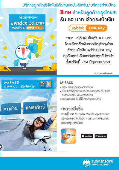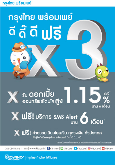 นำมาด้วยโปรโมชั่นโดนใจ ดี ดี๊ ดี ฟรีX3 เมื่อสมัครกรุงไทยพร้อมเพย์ และโปรโมชั่นแจกทองแจกเงิน เมื่อทำธุรกรรมต่างๆกับธนาคาร ไปดูกันเลยค่ะ