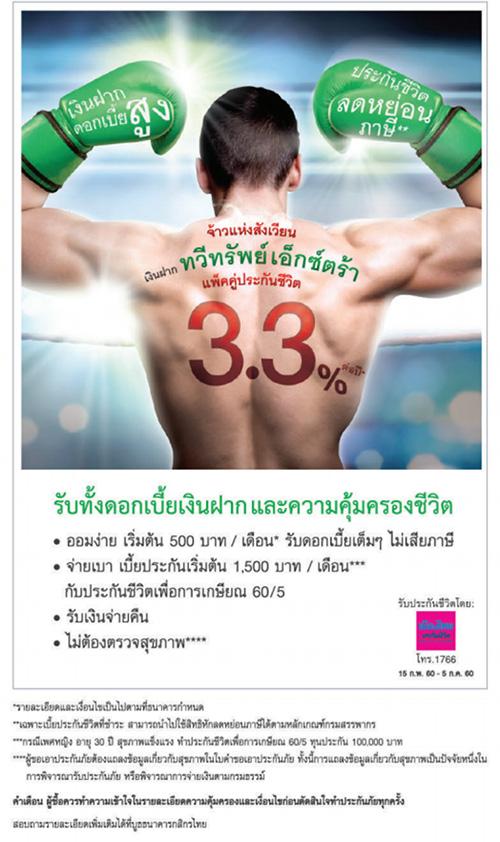 นำเด่นมาด้วยโปรโมชั่นบัญชีเงินฝากออมทรัพย์คุ้มครองชีวิต ที่ให้คุณรับความคุ้มครอง 25 เท่า*ของเงินฝาก สูงสุด 15 ล้านบาท ** และโปรโมชั่นพร้อมเพย์ บัตรเดบิต ประกันชีวิตที่น่าสนใจไม่น้อยเลยค่ะ