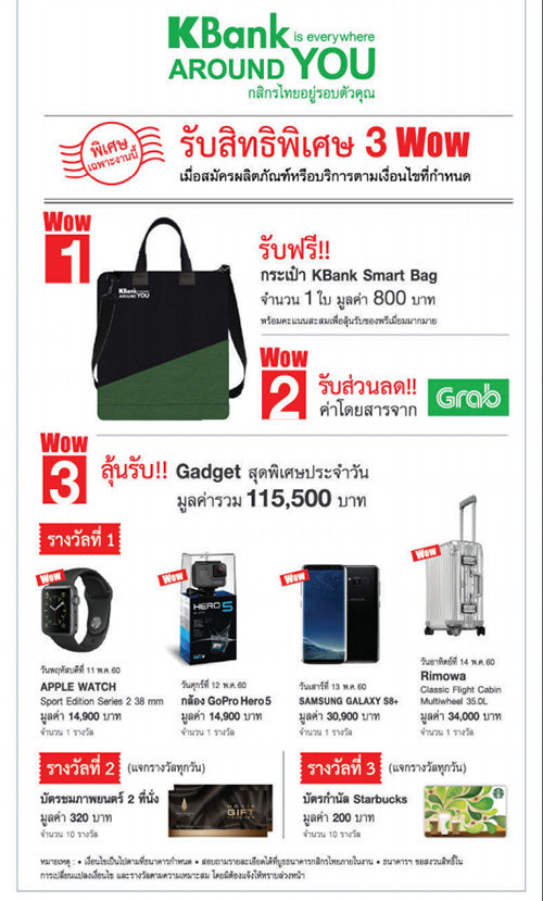 KBank is everywhere AROUND YOU กสิกรไทยอยู่รอบตัวคุณ Special Promotion รับฟรี KBank Smart Bag เพียงสมัครผลิตภัณฑ์ หรือบริการใดๆ ของธนาคารตามเงื่อนไขที่กำหนด ภายในงาน