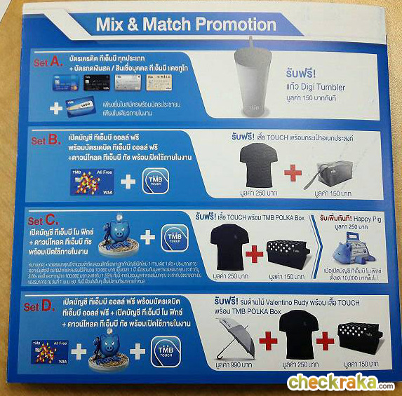 ปีนี้ธนาคารทหารไทยนอกจากจะขนโปรโมชั่นมามากมายแล้ว ยังจะพาคุณๆ มา Mix & Match Promotion กันอีกด้วยค่ะ ไปดูกันค่ะ ว่าจะ Mix อะไร Match อะไร และจะโดนใจแค่ไหน^^