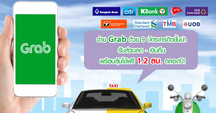 เดี๋ยวนี้เราสามารถใช้บัตรเครดิต หรือบัตรเดบิตจ่ายค่าบริการ Grab ได้แล้ว และในตอนนี้ก็มีทั้งหมด 9 สถาบันการเงินชั้นนำ ที่พร้อมจะให้ทั้งส่วนลด - เงินคืน เมื่อเราผูกบัตรและเลือกชำระค่าบริการด้วย GrabPay (ครั้งแรก) โดยทุกๆ ยอดการชำระนั้นจะได้รับ 1 สิทธิ์ ลุ้นรางวัลใช้บริการ Grab ฟรี ถึงสิ้นปี รวมมูลค่ากว่า 1.2 ล้านบาท! โปรโมชั่นดีๆ แบบนี้มีถึงสิ้นเดือนมิถุนายนเท่านั้น (30 มิ.ย. 60) อย่ารอช้า รีบไปดูโปรฯ ของแต่ละบัตรกันดีกว่าค่ะ