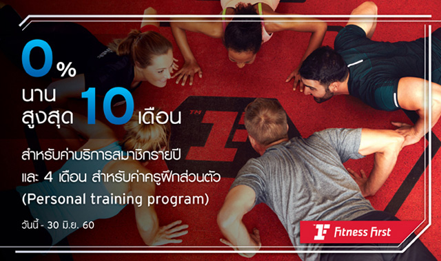 ผ่อน 0% นาน 10 เดือน พร้อมรับเงินคืนสูงสุด 65,000 บาท ที่ Fitness First สิทธิพิเศษจากบัตรเครดิตซิตี้