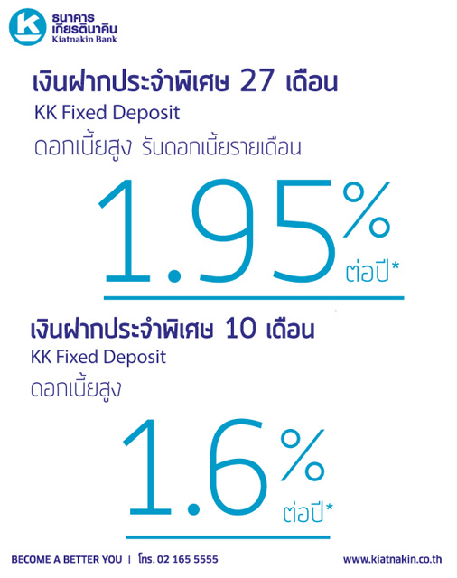 บัญชีเงินฝากประจำพิเศษจากธนาคารเกียรตินาคิน KK Fixed Deposit ให้ดอกเบี้ยสูง