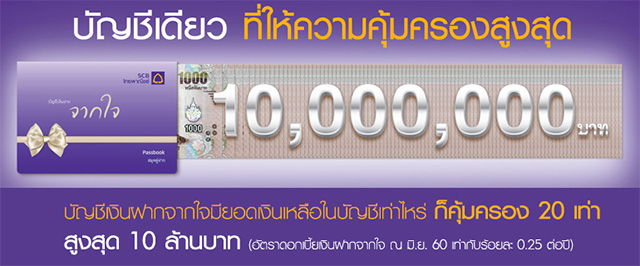 บัญชีเงินฝากจากใจ จากธนาคารไทยพาณิชย์ มอบความคุ้มครองชีวิตจากอุบัติเหตุ 20 เท่า* สูงสุด 10 ล้านบาท ทันทีที่สมัคร