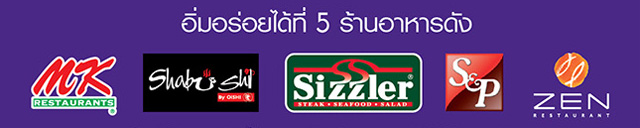 สายกิน ห้ามพลาด! กับ 5 ร้านดัง รับเครดิตเงินคืน 15% ณ 5 ร้านอาหารชื่อดังที่ร่วมรายการ อาทิ MK Restaurants, Shabushi, Sizzler, S&P, และ ZEN Japanese Restaurants ง่ายๆ ไม่ต้องใช้คะแนนแลก เพียงใช้จ่ายผ่าน