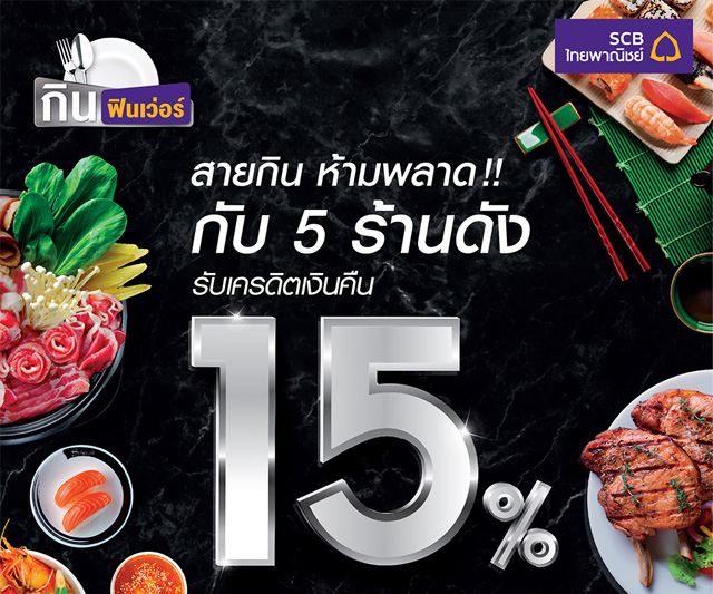 สายกิน ห้ามพลาด! รับเครดิตเงินคืน 15% กับ 5 ร้านอาหารดัง เมื่อชำระผ่านบัตรเครดิตไทยพาณิชย์
