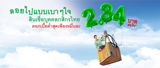 สินเชื่อบุคคลกสิกรไทย ดอกเบี้ยต่ำสุดหมื่นละ 2.34 บาทต่อวัน