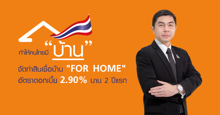 ธอส. เตรียมวงเงิน 10,000 ล้านบาท จัดทำสินเชื่อบ้าน "FOR HOME" อัตราดอกเบี้ย 2.90% นาน 2 ปีแรก