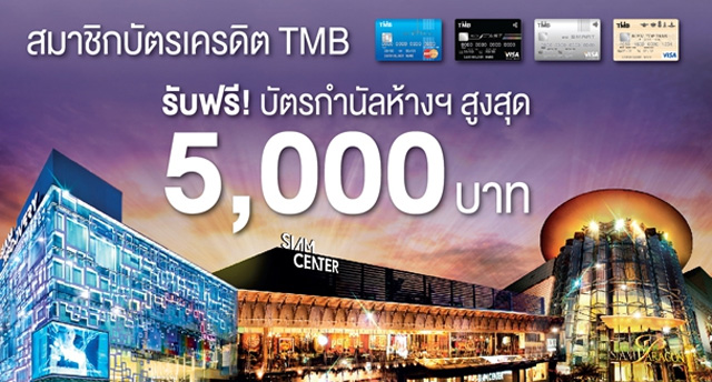 รับฟรี! บัตรกำนัลห้างฯ สูงสุด 5,000 บาท เมื่อช้อป ณ ศูนย์การค้าที่ร่วมรายการ ผ่านบัตรเครดิต TMB