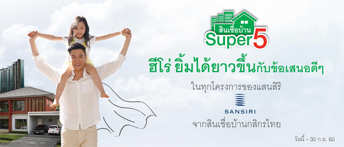 สินเชื่อบ้าน Super5 ฮีโร่ ยิ้มได้ยาวขึ้นกับข้อเสนอดีๆ ในทุกโครงการของแสนสิริ จากสินเชื่อบ้านกสิกรไทย