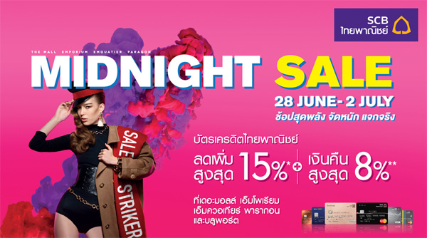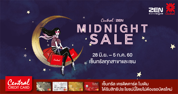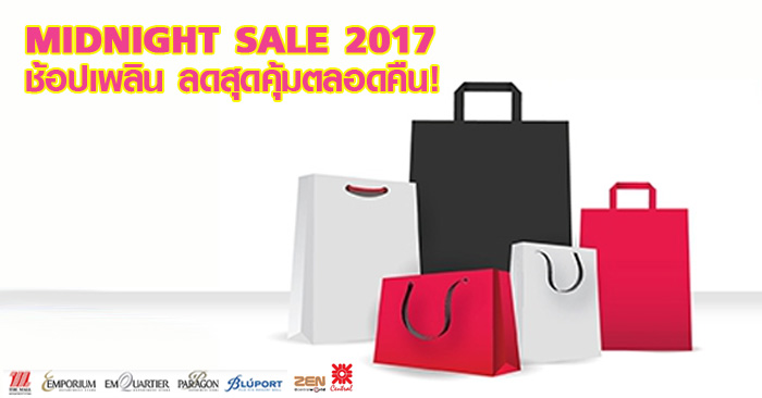 Midnight Sale 2017 รับส่วนลดและเงินคืน เมื่อช้อปที่ห้างสรรพสินค้าที่ร่วมรายการ ผ่านบัตรเครดิตชั้นนำ
