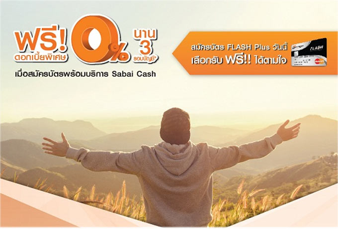 ฟรี! ดอกเบี้ยพิเศษ 0% นาน 3 รอบบัญชี เมื่อสมัครบัตร FLASH Plus พร้อมบริการ Sabai Cash จาก ธ.ธนชาต